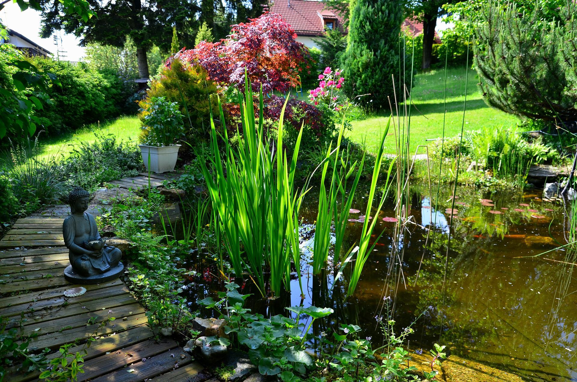 Erfahren Sie mehr über unser Angebot in den Bereichen Rasen, Bäume und Hecken, Gartenteiche sowie Rosen.